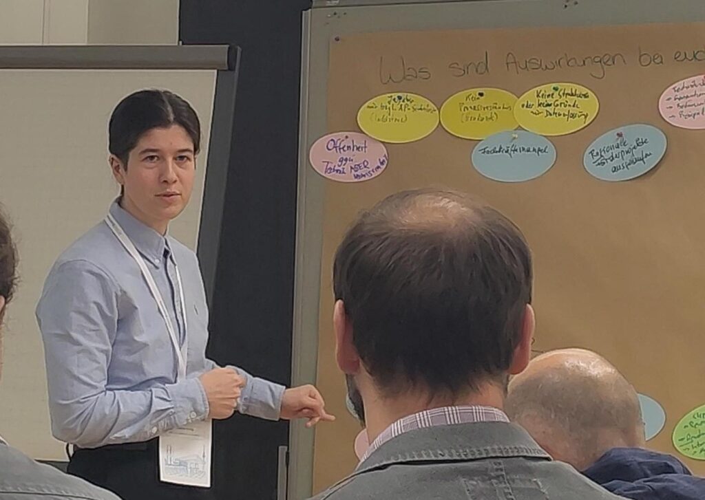 Im Rahmen des Workshops “Zwischen Skepsis und Potenzial – KI in KMU fördern” präsentierten wir die Ergebnisse unserer Breitenerhebung und traten mit Vertreter*innen aus Wissenschaft und Praxis in einen Dialog über Erfahrungen hinsichtlich KI-Akzeptanz. Daraus konnten wir sowohl Ähnlichkeiten als auch Unterschiede zu unserer Region ausmachen. In den FuturePitches stellte die CPT Präzisionstechnik ihre Vision einer Fabrik im Jahr 2035 vor und analysierte Transferpotenziale auf andere Kontexte gemeinsam mit den Teilnehmenden. Zu guter Letzt stellte Wittenbecher in den LessonsLearned ihren Use Case im Projekt vor, der mittels Beacon-Technologien Daten aufzeichnet, die zur Analyse und Optimierung der Produktionsprozesse verwendet werden. Unsere Perspektiven und Erfahrungen rund um arbeitsweltbezogene KI und Transformationsforschung fanden so vielfältig Eingang in den Dialog der gesamten Veranstaltung.