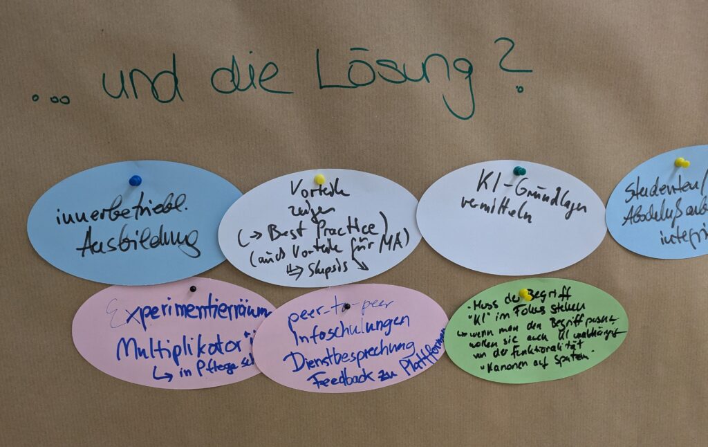 Das KMI war in nahezu allen Programmpunkten aktiv vertreten: In der Paneldiskussion brachte unser Pilotpartner WIN praktische Expertise zu den Gelingensbedingungen von digitaler Transformation in Unternehmen ein, insbesondere im Bereich der Personaleinsatzplanung. In den InnovationsTandems stellten wir gemeinsam mit der DBI ihre KI-Challenge vor – ein Format, bei dem die Mitarbeitenden Vorschläge zu Tools und Veränderungen gemäß ihrer Bedarfe machen können und anschließend abgestimmt wird, welche davon umgesetzt werden.