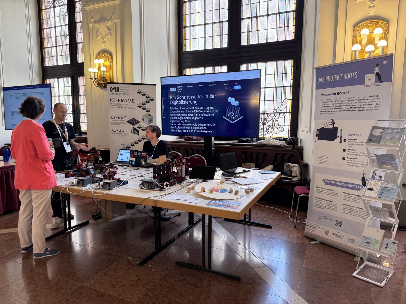 Im November kamen im Tagungswerk Berlin die regionalen Kompetenzzentren der Arbeitsforschung zusammen, um sich zu Transfer, Vernetzung und aktuellen Forschungsergebnissen auszutauschen. Wir waren in vielen Sessions aktiv vertreten und konnten erstmals unsere zwei Demonstratoren vorstellen. “Die Agile Fabrik der Zukunft“ vermittelt live, wie die Industrie 5.0 funktioniert, und der “DeNKI-Demonstrator” macht Implikationen und Zielkonflikte von KI-Nutzung begreifbar.
